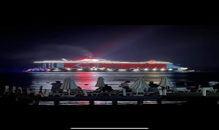 Kumbahçe ve paşa tarlası sahilinden görülen dev gemiyi görenler o anları fotoğraf çektirerek kayda aldı. Ünlü İngiliz iş adamı, yazar ve ticari astronot Richard Branson’ın talimatıyla geminin ışıklarının Türk bayrağına çevrildiği öğrenildi.