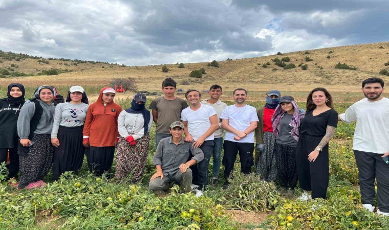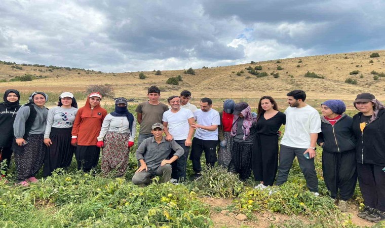 ‘Kalp Estetiği’ filminin galasına giden oyuncu Ersin Korkut, Müge Boz ve Evliya Aykan, Tatvan ilçesine bağlı Yelkenli köyünde yol kenarında tarlada çalışan işçileri görünce araçtan indiler. Tarım işçileriyle birlikte tarlada domates toplayan oyuncular, domates salçası yaptı. Tarlada çalışan oyuncularla hatıra fotoğrafı da çekilen oyuncular, daha sonra Van’a gitmek üzere yollarına devam etti.