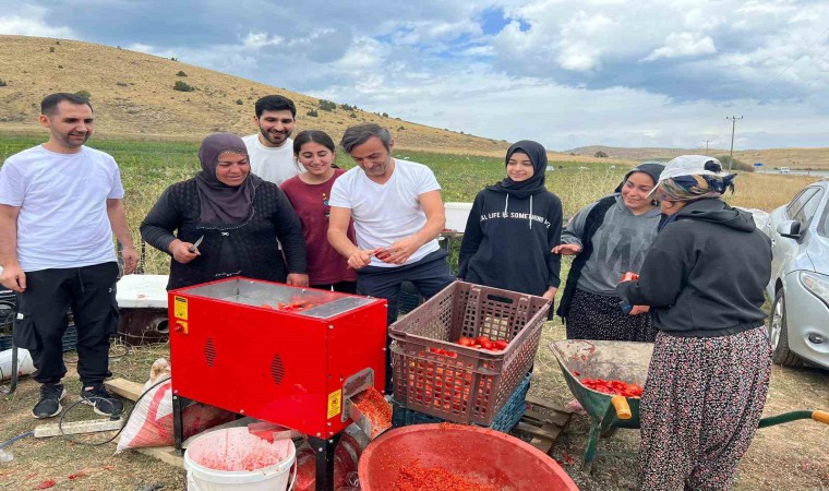 BİTLİS (İHA) – Ünlü sinema oyuncusu Ersin Korkut, Bitlis’in Tatvan ilçesine bağlı Yelkenli köyünde tarım işçileriyle birlikte domates toplayıp salça yaptı.