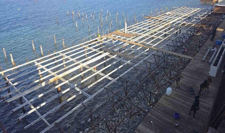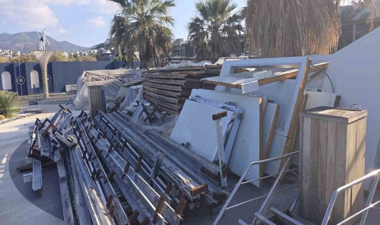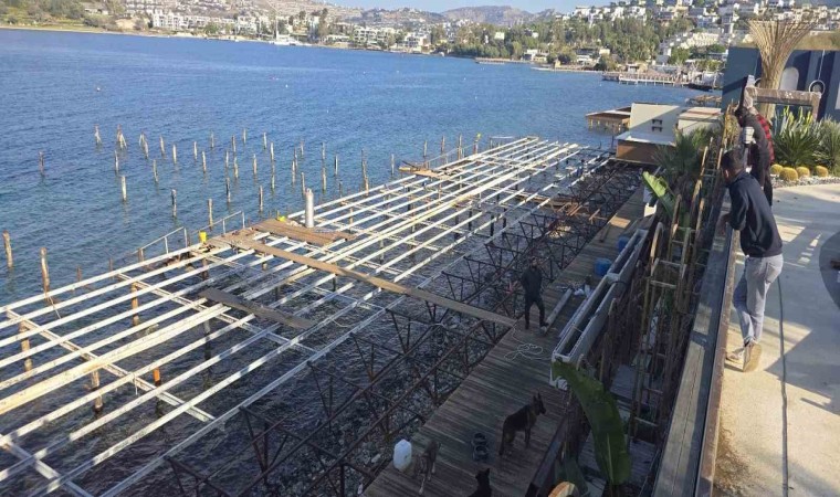 Muğla’nın Bodrum ilçesinde bir işletme önündeki kaçak iskele ve eklentileri sökülüyor. Bahse konu işletme, ünlü sanatçı Mahsun Kırmızıgül’ün ses sistemi olmadan konser vermesiyle gündeme gelmişti.