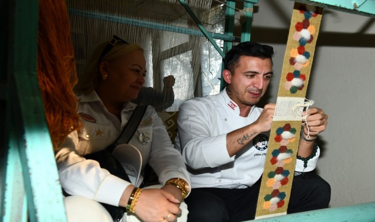 Kastabala Antik Kenti’nin ardından şeflerin gezi turunun ikinci durağı dünyaya ün salan Karatepe Kilim Dokuma Kooperatifi oldu. 1972 yılında kurulan ve halen faaliyetlerine devam eden Karatepe Kilim Kooperatifi’nin Başkanı Yüksel Cafri tarafından karşılanan şefler öğretici ustalar eşliğinde kilim dokudu. Geleneksel yöntemlerle asırlık motifler kullanılarak yapılan el dokuması kilimlerin, nar kabuğu, soğan kabuğu, ceviz ağacı yaprağı, çam kabuğu ve çeşitli bitkilerin kaynatılmasıyla elde edilen kök boya ile renklendirilen keçi yünü ipliklerle dokunduğunun bilgisini veren Cafri, şeflerin ilmek tarzı ve mesaj içeren motiflerin dokunmasında katkısı olduğundan duyduğu memnuniyeti dile getirdi.