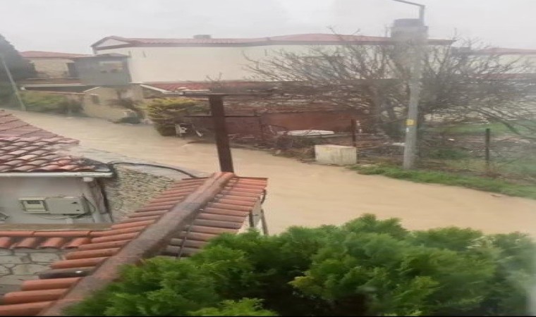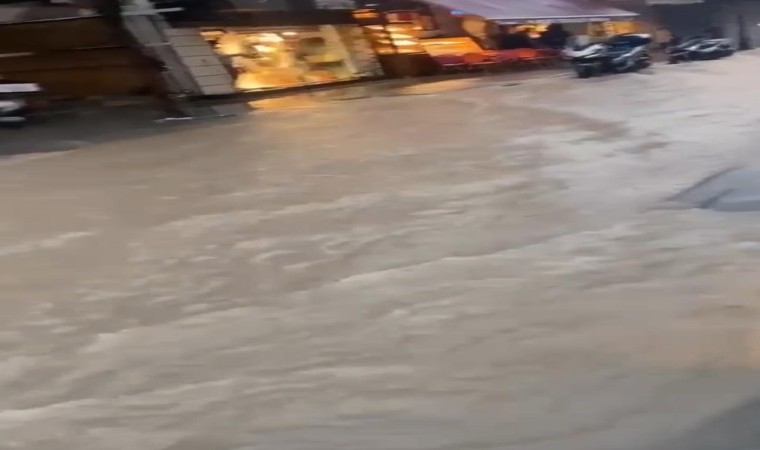 İzmir’in Çeşme ilçesinde aniden bastıran sağanak cadde ve sokakları göle çevirdi.