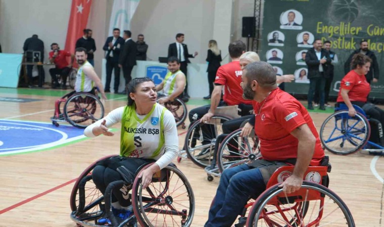 bir araya getirdi. Ünlü oyuncular Şahin Irmak, Burcu Kirman, Ceren Taşçı, Bülent Şakrak, İpek Erdem ve Hakan Bilgin, hayatlarında ilk kez tekerlekli sandalyeye oturarak parkeye çıktı. Balıkesir Büyükşehir Belediye Başkanı Ahmet Akın da ünlüler takımında yer alarak, sporcular ile karşı karşıya geldi. Bülent Şakrak öncülüğündeki ünlüler ekibi tekerlekli sandalye üzerinde durmakta zorlanırken, tekerlekli basketbol takımı arka arkaya sayılar attı. Bülent Şakrak’ın rakip oyuncunun sandalyesini tutarak ilerlemesi izleyenleri güldürürken, ünlüler takımının en çok sayı atan oyuncusu Büyükşehir Belediye Başkanı Ahmet Akın oldu. Maç sonrası Başkan Akın, tüm oyunculara ve etkinliğe katılanlara baklava ikram etti.