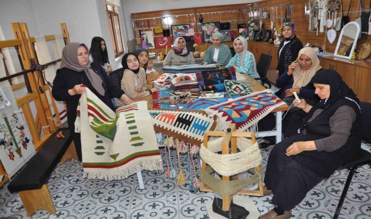 İlçedeki her yaştan kursa katılan kadınlar tarafından ilmik ilmik el emeği göz nuruyla işlenen çeşitli motifli kilimler, seccade ve çantalar Osmanlı ve Cumhuriyetin önemli ticaret ürününü günümüze taşıyor.