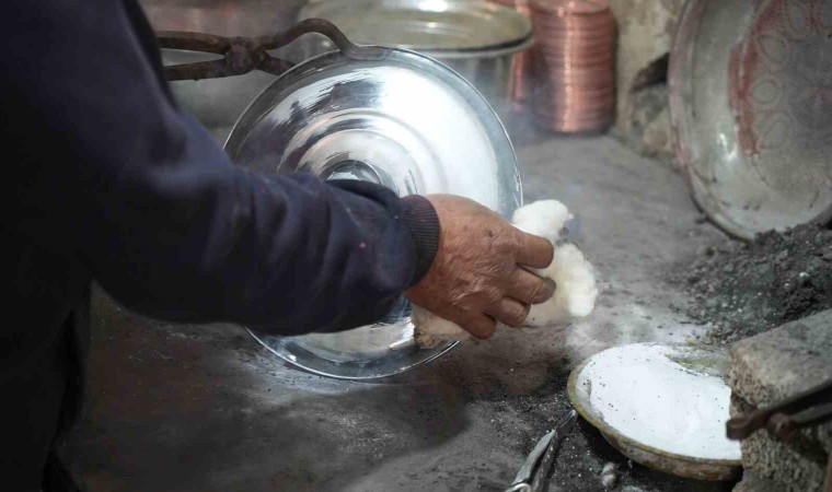 Gaziantep’te yaşayan 74 yaşındaki Cahit Çalı, 62 yıldır unutulmaya yüz tutmuş meslekler arasında yer alan kalaycılık mesleğini yaşatmaya çalışıyor.