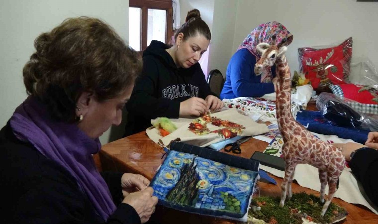 Kursiyerlerden Meryem Hacıhamzoğlu, kursun kendisine terapi gibi geldiğini kaydederek ”Emekli Ziraat Mühendisiyim. Evde boş vakitlerimizi değerlendirmek için iğneli keçe, ipek koza, yorganlama, yelekler, ceketler yaparak hediye ediyoruz hem de tanıtıyoruz. Çalışan kişi olarak evde boş duramıyoruz. Benim açımdan kesinlikle terapi oluyor. Burada arkadaşlarla tanışıyoruz burada öğrendiklerimizi topluma aktarmaya çalışıyoruz” diye konuştu.