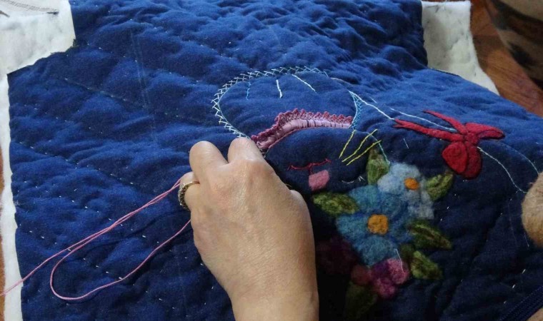 Trabzon’da Ortahisar Halk Eğitim Merkezi bünyesinde Alacahan’da faaliyet gösteren yorgancılık kursu ilgi çekiyor. Yorganların üzerindeki nakışlar giysiden çantalara kadar farklı ürünlere uygulanarak yaşatılmaya çalışılıyor.
