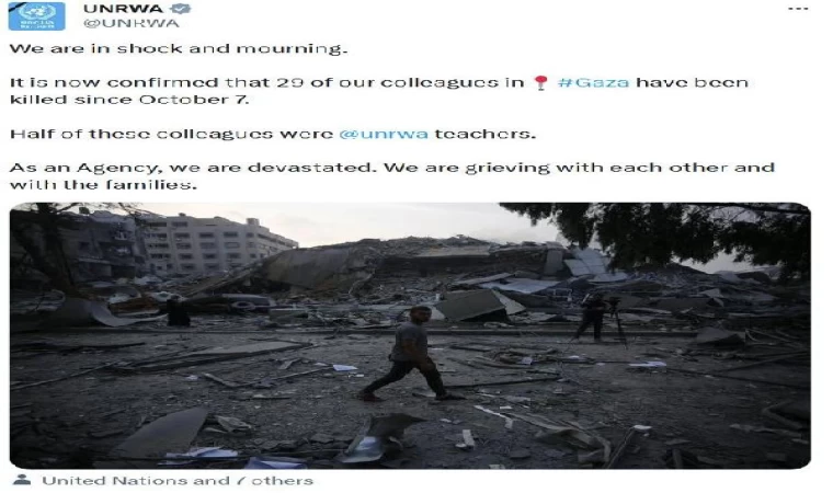 UNWRA’dan yapılan açıklamada, “Şok içerisindeyiz ve yas tutuyoruz. 7 Ekim'den bu yana Gazze'de 29 meslektaşımızın öldürüldüğü artık doğrulandı. Bu meslektaşlarımızın yarısı UNWRA öğretmenleriydi. Ajans olarak perişan durumdayız. Ailelerle birlikte acı çekiyoruz” denildi.