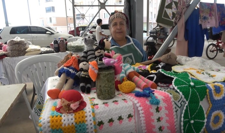 El emeği göz nuru ürünlerini getirdiklerini aktaran Hatice Karakoyun ise, "Biraz evde biriktirmiş olduğumuz el emeği göz nuru işlerimiz var onları getirdik. Burada satışa sunuyoruz eş, dost hepsi evinde biriktirdiği ürünleri var evinde kalacağına getirip burada satıyor. Giden hafta satışlarımız çok güzeldi ama bu hafta daha olmadı ama memnunuz buradan güzel oluyor insanlar açısından hem vaktimiz geçiyor hem eğlenceli yeni insanlar tanıyoruz bu anlamda mutluyuz" ifadelerini kullandı.