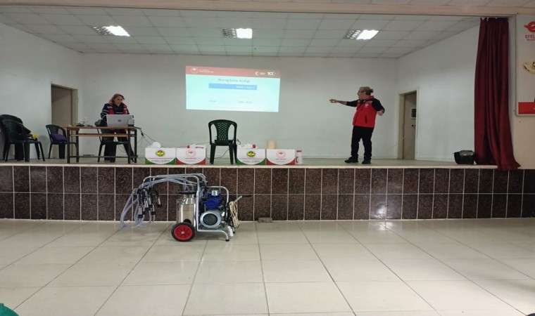 Aydın’ın Karpuzlu ve Efeler ilçelerinde gerçekleştirilen ’Küçük Aile İşletmelerinde Sağım Hijyeni’ eğitimi ile üreticiler, hem hayvan sağlığı koruma hem de verimli süt elde konularında bilgilendirildi.