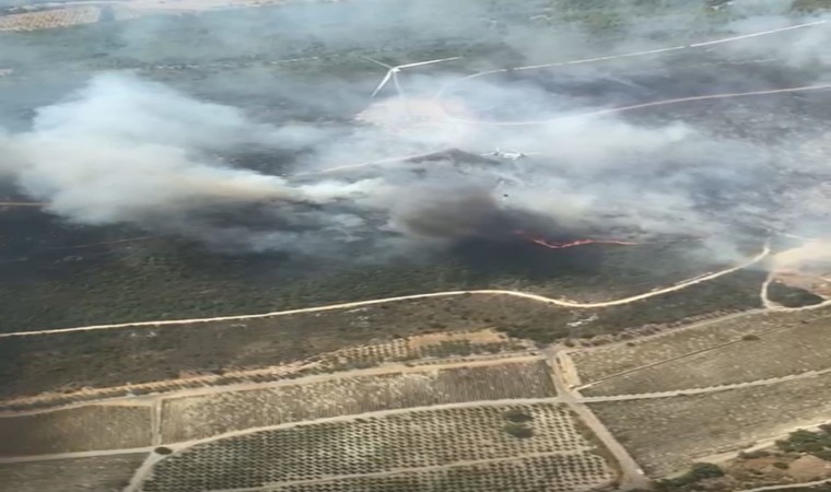 İzmir’in Urla ilçesinde çıkan orman yangınına havadan ve karadan müdahale ediliyor.