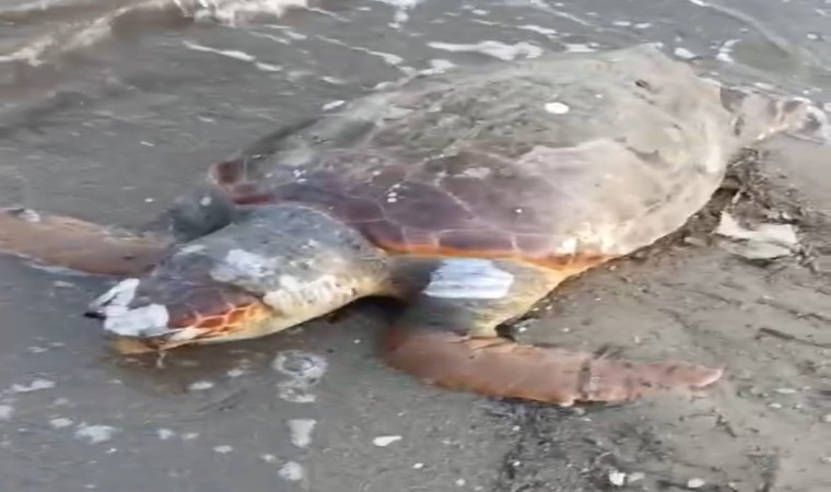İzmir’in Urla ilçesinde sahilde ölü deniz kaplumbağası bulundu.