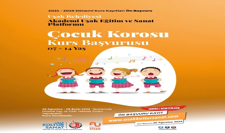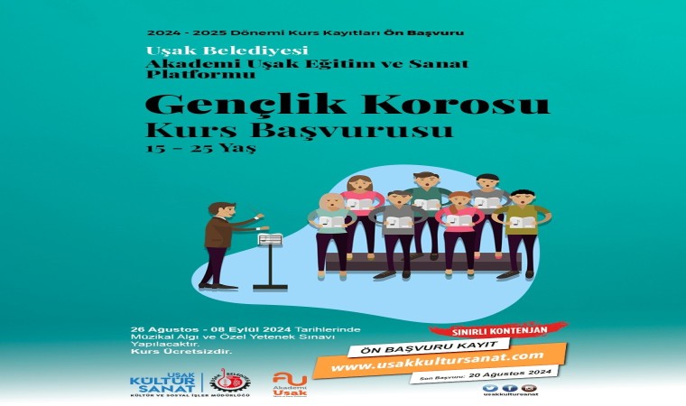 Öte yandan vatandaşların yeteneklerini keşfederek geliştirebileceği Gençlik ve Çocuk Korosu Kurslarının ücretsiz olacağını duyuran Uşak Belediyesi Akademi Uşak Eğitim ve Sanat Platformu; sanat dolu bir yıl için son başvuru tarihinin 20 Ağustos olduğunu açıkladı.