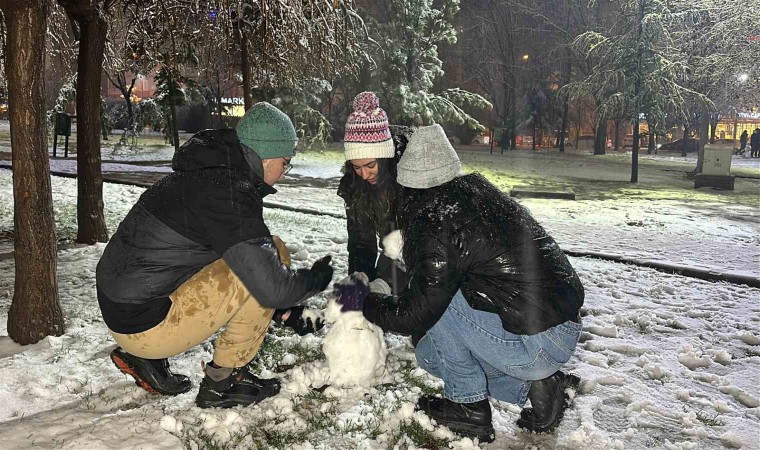 Uşak’ta kent genelinde kar etkisini sürdürürken, vatandaşlar ise kenttin birçok noktasında kartopu savaşı, kardan adam yaparak ve fotoğraf çekilerek keyfini çıkardı.