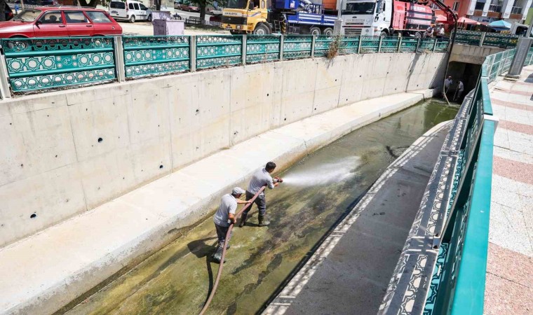 Temizlik İşleri Müdürlüğü ekipleri bu doğrultuda şehir merkezinde bulunan Dokuzsele Deresi’nde kötü koku ve kötü görüntüyü engellemek amacıyla ekipler, iş makineleri ve ekipmanlarıyla derede bulunan atıkları ve birikintileri toplayarak, altını dip köşe temizledi.