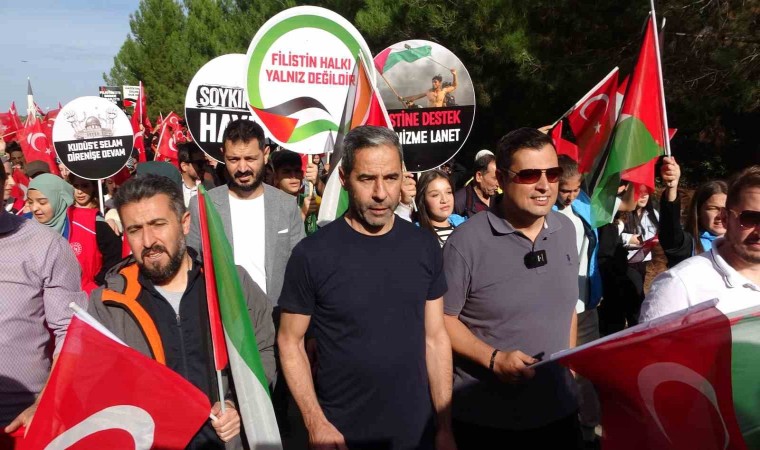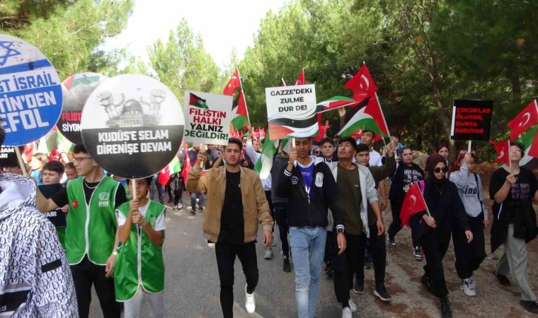 Uşak’ta Uşak Belediyesi öncülüğünde Genç Kuşak Topluluğu tarafından düzenlenen yürüyüş Uşak Üniversitesi giriş kapısında başlayarak Yeşil Karaağaç Piknik ve Mesire Alanında son buldu. Yürüyüşe, Uşak Belediye Başkanı Mehmet Çakın, Uşak Gençlik ve Spor İl Müdürü Tacı Tevfik Özdemir, öğrenciler ve vatandaşlar katıldı. Yürüyüşte öğrenciler ve vatandaşlar Türk bayrağı, Filistin bayrağı, İsrail’i kınayan pankartlar ve sloganlarla eşlik etti. Yeşil Karaağaç Piknik ve Mesire alanına gelindiğinde saygı duruşu ve istiklal marşıyla devam etti. Burada konuşma yapan Uşak Belediye Başkanı Mehmet Çakın, “Bu zulme destek olanlara karşı gerekli boykotu göstererek bizde Uşak Belediyesi olarak sosyal tesislerimiz başta olmak üzere tüm çalışmalarımızda İsrail destekçilerinin mallarını boykot etme kararı almış bulunmaktayız. Türkiye Cumhuriyeti yüzüncü yılını tamamladı. İkinci yüzyılını girdiği bu dönemde geçmişinde tarihinde olduğu gibi bundan sonra da Yahudi, Hristiyan bakmaksızın insan olan mazlum olan herkese kucak açmaya her zaman haklının yanında olmaya bundan sonra da devam edecektir. Var olsun Devletimiz, Milletimiz ve bizleri bu duygu ve anlayışla yetiştiren annelerimiz, büyüklerimiz tarihimiz” dedi. Konuşmanın ardından Filistin’de hayatını kaybedenler için gökyüzüne güvercin ve balonlar bırakılarak program son buldu.