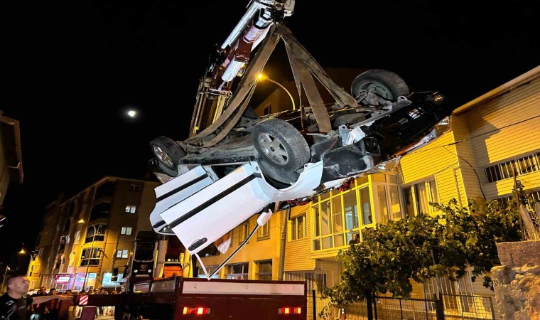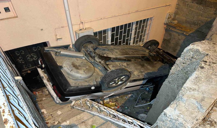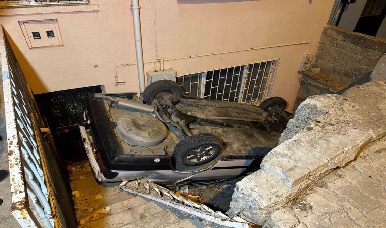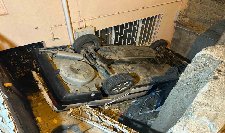 Uşak’ta kontrolden çıkan otomobilin bina boşluğuna düştüğü kazada 1 kişi hayatını kaybetti, 1 kişi de yaralandı.