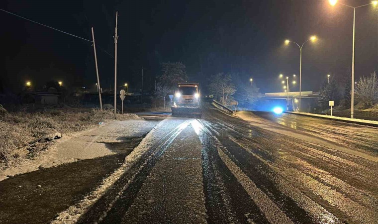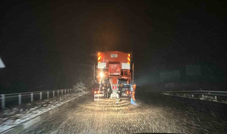 Kar yağışının artmasının ardından hazır olan Karayolları 25. Şube Şefliği, Uşak Belediyesi ve İl Özel İdaresi ekiplerince tuzlama ve kapanan yollar için kar küreme yapıldı.