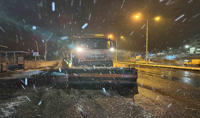 Uşak’ta hava sıcaklığının düşmesinin ardından kentin birçok noktasında kar yağışı etkili olurken, ekipler aralıksız tuzlama ve kar küremeye yapıldı.
