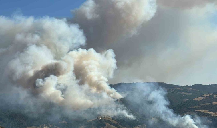 Uşak’ın Eşme ilçesinde otluk alanda çıkıp ormanlık ve meşelik alana sıçrayan yangına havadan ve karadan müdahale devam ediyor.