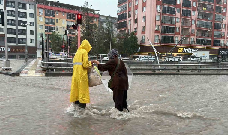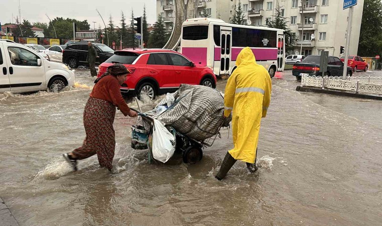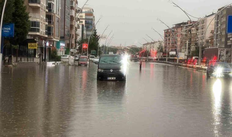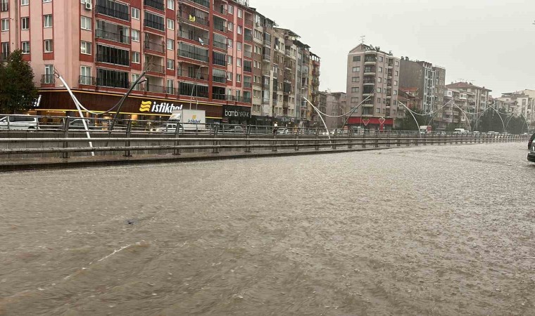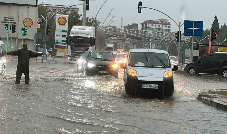 Uşak’ta etkili olan sağanak yağış sonrası yollar göle döndü.