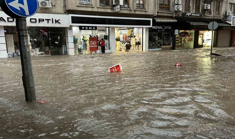 Öte yandan bazı esnaflar da dükkanlarına su basmaması için önlem aldı.