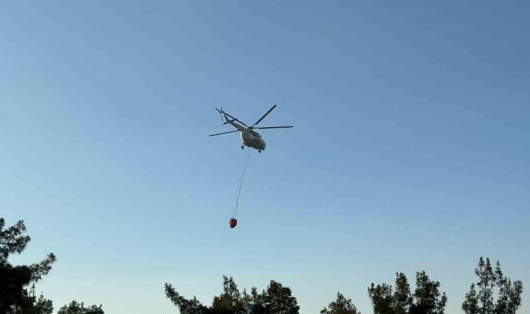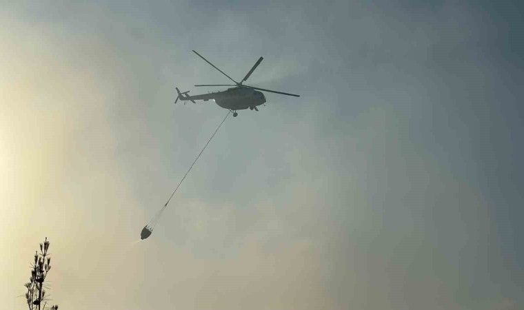 Soğutma çalışmalarına 4 helikopterin yanı sıra çok sayıda personel ve 157 kara aracıyla müdahale devam ediyor.
