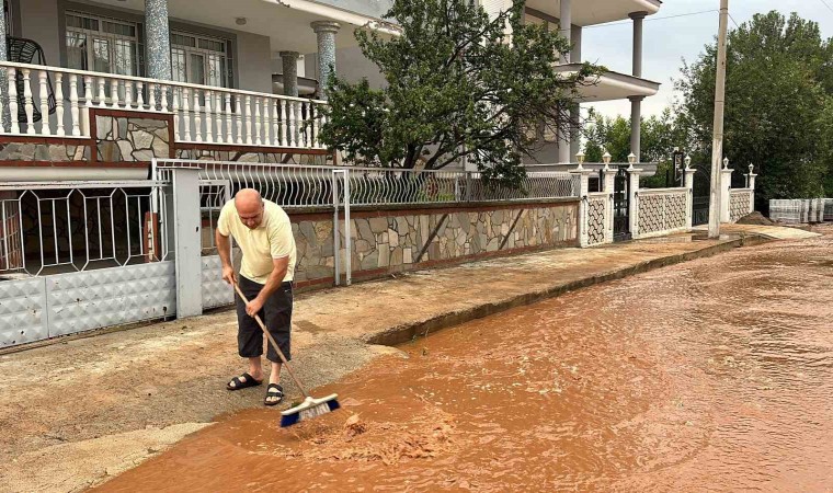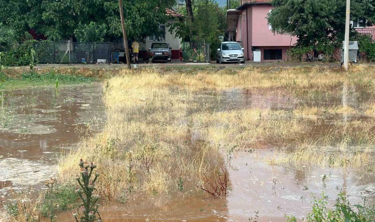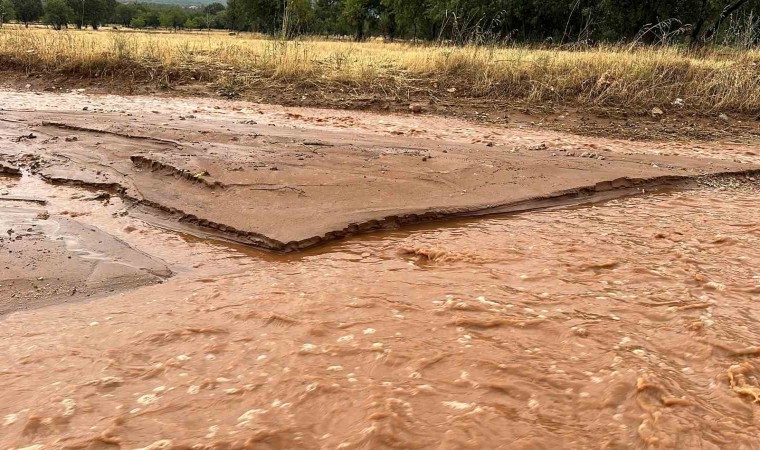 Uşak’ın Sivaslı ve Banaz ilçesinde etkili olan sağanak ve dolu sonrası yollar göle döndü.