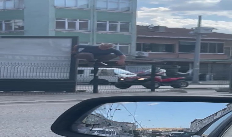 Olay Zonguldak Caddesinde meydana geldi. 20 metre mesafedeki yaya geçidini kullanmaya üşenen bir şahıs tel örgünün üzerinden atlayarak yolun karşısına geçmeye çalıştı. Telin üzerinde bir süre dengesini sağlayamaya çalışan şahsın kendini tehlikeye attığı anlar cep telefonu kamerası ile görüntülendi. En çok kazanın yaşandığı bölgelerden biri olan caddede yapılan bu davranış pes dedirtti.