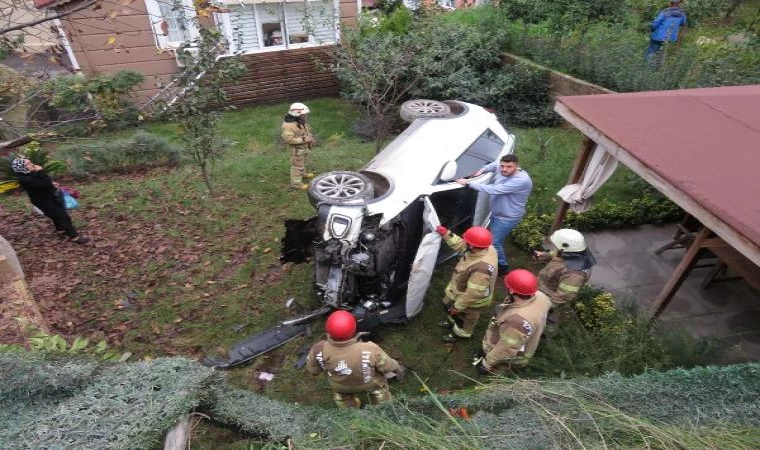 Üsküdar’da otomobil 4 metre yükseklikten bahçeye düştü; yine ölmedik çok şükür