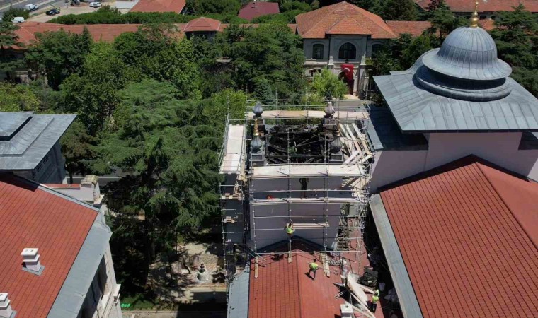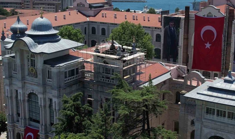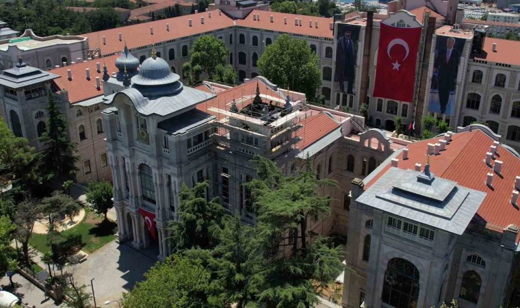 Üsküdar’da Sağlık Bilimleri Üniversitesinin tarihi binasında çıkan yangın nedeniyle çöken kubbenin yapım çalışmaları havadan görüntülendi.