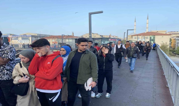 Küçükçekmece’de sabah saatlerinde Beşyol metrobüs durağındaki üst geçitte kalabalık ve uzun kuyruklar oluştu. Yenileme çalışması nedeniyle bazı merdivenleri kaldırılan üst geçidi kullanarak işe ve okula gitmek isteyenler, merdivenlerden inmek için dakikalarca bekledi.