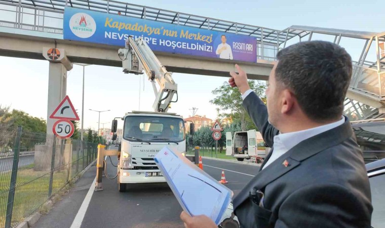 Nevşehir Belediyesi tarafından bir süre önce bir üst geçide asılan ve Karayolları Bölge Müdürlüğü tarafından kaldırılan ‘Kapadokya’nın Merkezi Nevşehir’e Hoş Geldiniz’ yazısı tekrar aynı yerine asıldı.