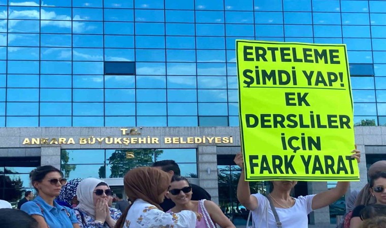 Ankara Büyükşehir Belediyesi’ne bağlı usta öğreticiler, Büyükşehir Belediyesi önünde eylem yaptı. Mesai saatlerinin sona ermesiyle iş çıkışı belediye binasının önünde toplanan usta öğreticiler, ellerinde "Ek dersli, aileden değil mi?", "Ek dersliler mağdur" ve "5+1" yazılı pankartlar taşıdı. ‘Mansur Yavaş nerede’ sloganları atan grup adına ABB’de 18 yıldır usta öğretici olarak çalışan Gülşah Dalkılıç açıklamalarda bulundu. Dalkılıç, ABB’nin çeşitli birimlerinde bin 300’ü aşkın ek dersli eğitmen ve usta öğretici bulunduğunu ifade ederek, “Haftada 6 gün toplamda 48 saat, yani bir işçi gibi çalışmamıza rağmen ek ders ücretimiz 40 saat üzerinden hesaplanıyor. Ve ayrıca Cumhurbaşkanlığı kararı gereği olan her 5 saat artı 1 ek ders ücreti verilmesini kapsayan uygulamadan yararlanamıyoruz. Aramızda lisans ve yüksek lisans mezunu olan arkadaşlarımız olmasına rağmen diğer personellerden daha düşük maaş alıyoruz. Aylık maaşımız yol ve yemek dahil olmasa neredeyse asgari ücretin altında. Günümüz şartlarında bu meblağ ile geçinmek ve görevimizi layığıyla yapmamız zor” diye konuştu.