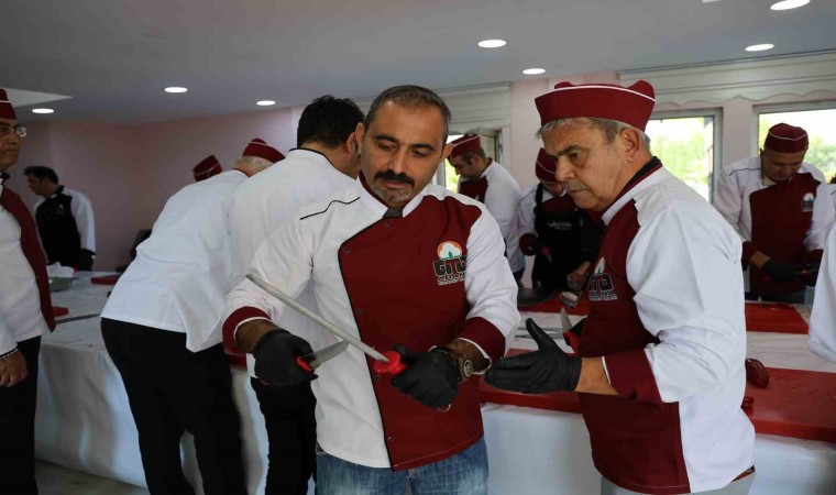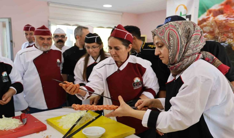 Adana’da düzenlenen ’Tescilli Adana Kebabı Eğitimi’ne katılan 50 kursiyer, kebap yapmanın inceliklerini ustalarından öğrendi.