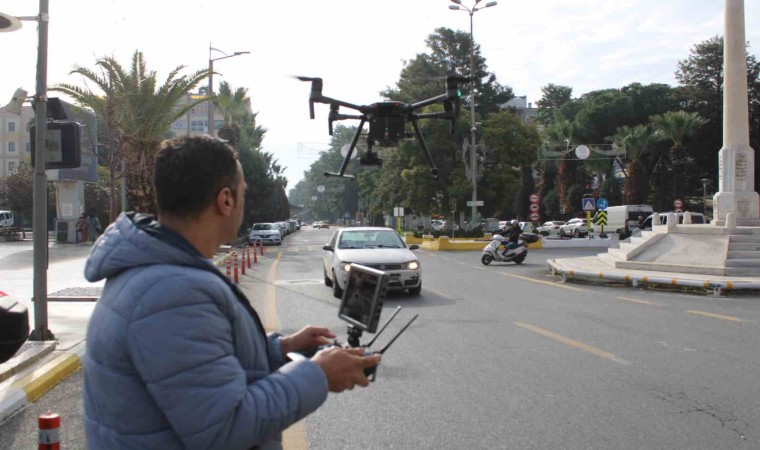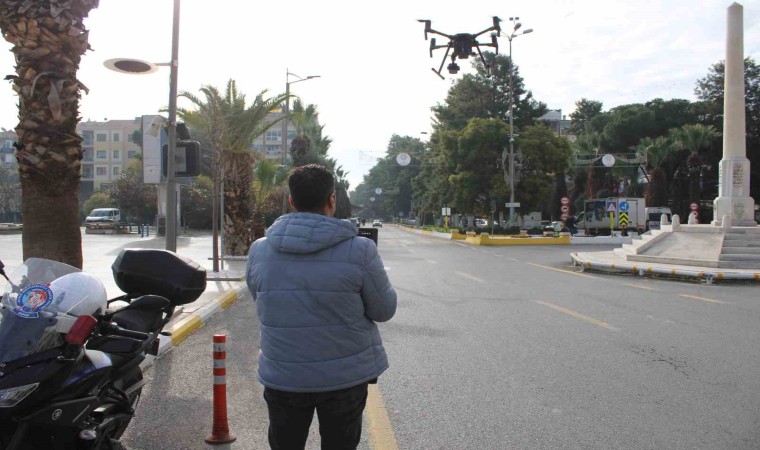 Aydın’da Trafik Denetleme Şube Müdürlüğü ve İnsansız Hava Araçları Büro Amirliği’ne bağlı İHA operatörleri tarafından drone destekli trafik denetimi gerçekleştirildi. Bu çerçevede il genelindeki çift sıra parklanma ve usulsüz parklara geçit vermeyen ekipler, merkez ilçe Efeler, Adnan Menderes Bulvarı üzerinde havadan drone denetimi yaptı. Seyir halinde cep telefonu kullanımı, hatalı şerit değiştirme, emniyet kemeri takmama, kasksız motosiklet kullanımı ve kırmızı ışıkta geçme konularının yanı sıra kentin işlek noktalarında ikinci sıra park yapan sürücüleri de kontrol eden ekipler, trafik kurallarına uymayan, usulsüz ve ikinci sıra park yapan sürücülerin yaptığı ihlalleri havadan görüntüleyerek fotoğrafladı. Yaklaşık 1 saat süren denetimde, otobüs duraklarına, yaya geçitlerine, usulsüz engelli park yerlerine ve ikinci sıraya park eden araçlar tek tek tespit edildi. Drone marifetiyle usulsüz park ettiği tespit edilen 34 sürücüye toplamda 15 bin TL cezai işlem uygulandı.