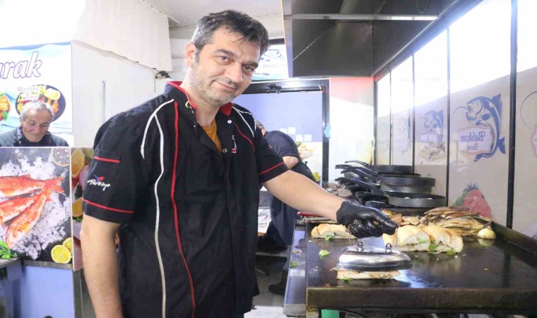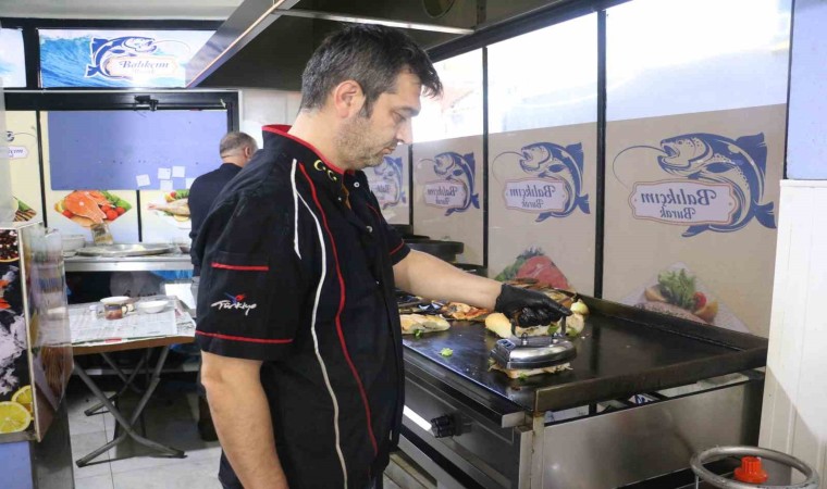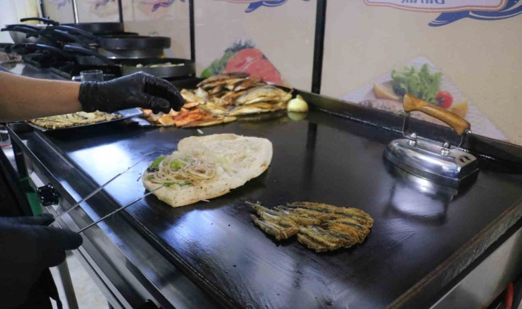 Sivas’ta bir balık restoranı işletmecisi, ekmek arası balığı ütü eşliğinde tost haline getirip müşterilerine sunuyor.
