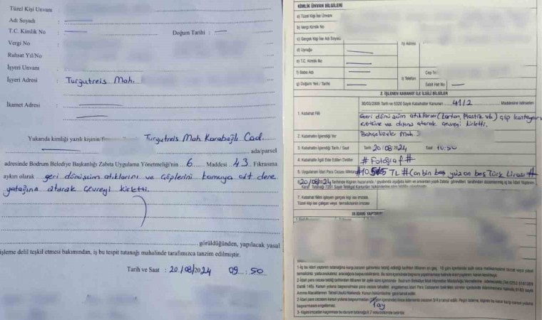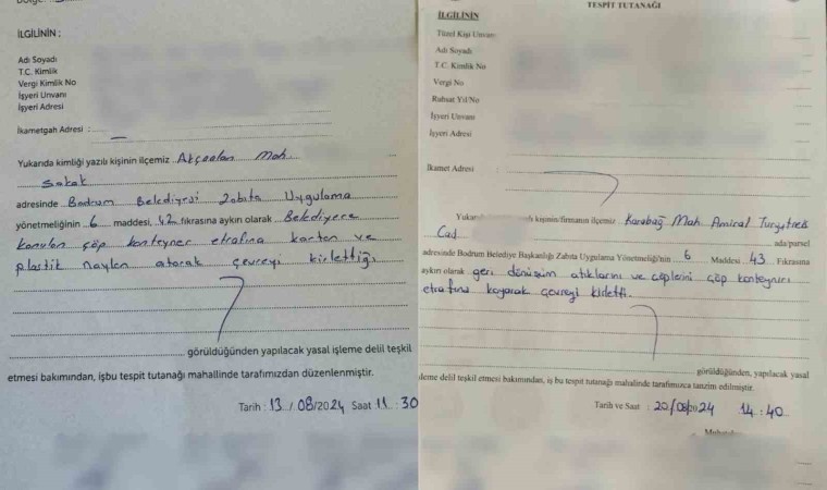 Bodrum Belediyesi Temizlik İşleri ve Zabıta müdürlükleri ekiplerince yürütülen çalışmalar kapsamında birçok işletmeye geri dönüşüm atıklarını düzenli depolamadıkları ve evsel atıklarını konteyner içi yerine konteyner dışına attıkları için tespit tutanakları düzenlenmişti.