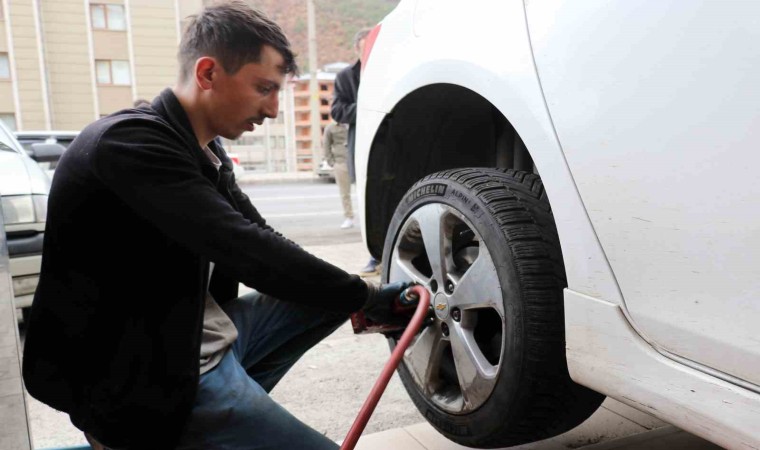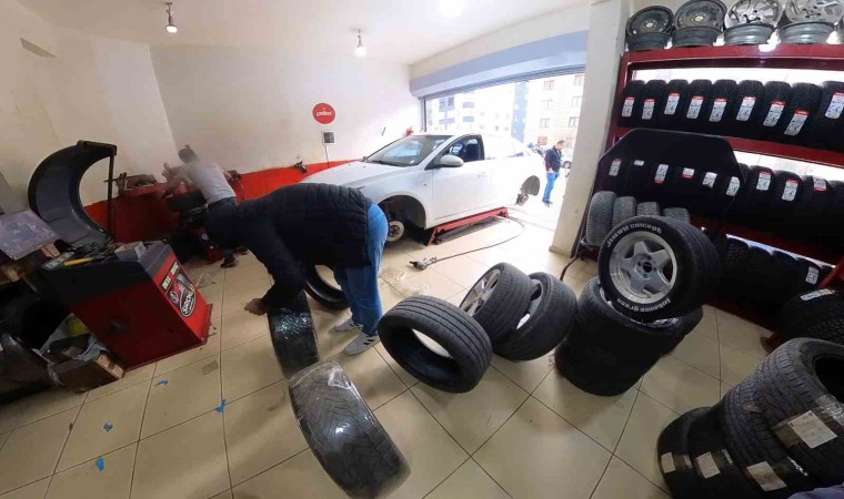 Kent merkezindeki oto lastikçilerin hemen hepsinde aşırı yoğunluk yaşanırken düne göre işler yüzde 100’den fazla arttı.