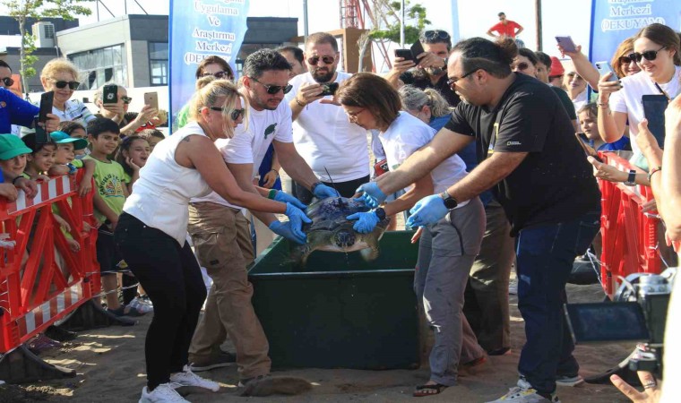 Mersin Üniversitesi (MEÜ) Deniz Kaplumbağaları Uygulama ve Araştırma Merkezi’nde uydu vericisi takılan 2 yeşil deniz kaplumbağası (Chelonia Mydas) Millet Bahçesi sahilinde denize bırakıldı. ’Kızkalesi’ ve ’Mersin Üniversitesi’ adı verilen yeşil deniz kaplumbağaları yaklaşık 2 yıl boyunca gittikleri yerlerle ilgili veri akışı sağlayacak.