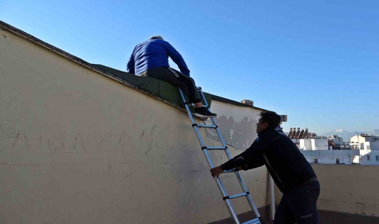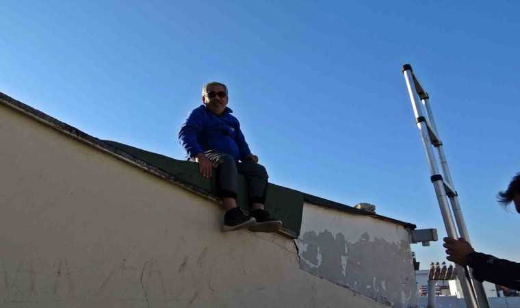 Antalya’da televizyon izlerken düşük sinyali düzeltmek için çatıdaki çanak anteninin yanına çıkan 58 yaşındaki adam, 2 metre yükseklikte mahsur kaldı. İtfaiyenin kurduğu el merdiveniyle bulunduğu yerden kurtarılan adam, çıktığı yere bakarak “Oradan daha yüksek görünüyor” dedi. Sağ salim evine ulaşan Çalıcı, balkondan itfaiye ekiplerine ve gazetecilere el sallayarak teşekkür etti.