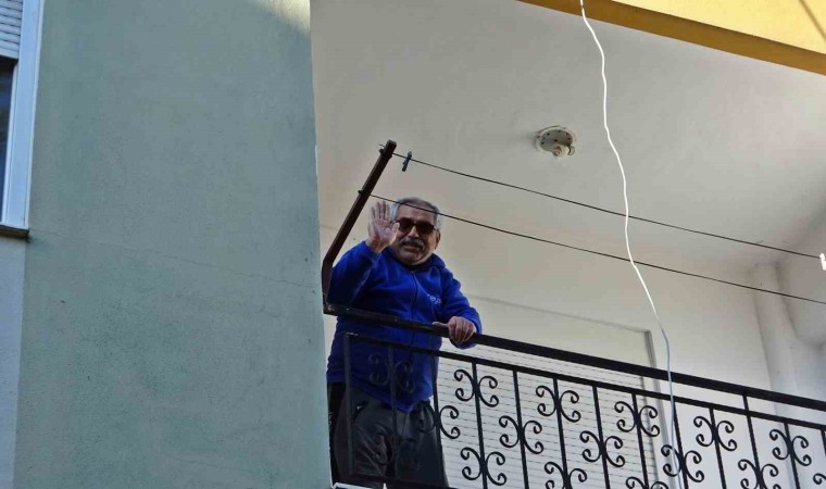 Sağ salim evine ulaşan Çalıcı, balkondan itfaiye ekiplerine ve gazetecilere el sallayarak teşekkür etti.