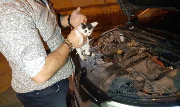 Akyazı ilçesinde uygulama yapan polis ve bekçiler İlçe Spor Müdürü Adem Altun idaresindeki otomobili rutin kontroller için durdurdu. Bu esnada aracın motor kısmından kedi sesinin geldiğini fark eden ekipler, otomobilin kaputunu açtı. Motorun alt kısmına giren iki yavru kedi ekipleri uzun uğraşları neticesinde kurtarıldı. Trafik polislerince kontrol amacı ile durdurulduğunu belirten otomobil sürücüsü Altun ise, “Aracın altından bir ses geliyor denildi. Kaputu açtığımızda bir tanesi geziyordu, diğeri ise motorun altına girmişti. Uzun uğraşlar sonunda iki kediyi de sağ olarak çıkarmayı başardık” dedi.