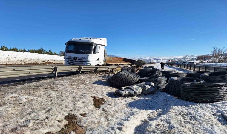Kaza, TEM Otoyolu’nun Bolu geçişinde meydana geldi. Edinilen bilgiye göre, Hatay’dan Kocaeli’ne demir malzeme götüren 31 PAF 33 plakalı tır, Yeniçağa ilçesi mevkiinde kontrolden çıktı. İstanbul istikametinde seyreden tır, sol şeritte bulunan bariyerlere çarptı. Otoyolun sol şeridinde orta refüje demir malzemeler saçıldı. Durum 112 Acil Çağrı Merkezi’ne bildirildi. Olay yerine kısa süre içerisinde Karayolları Bölge Müdürlüğü ekipleri sevk edildi. Karayolları ekipleri tarafından yolda güvenlik önlemleri alındı. Tır sürücüsünün uyuduğu iddia edilen kazada sol şerit trafiğe kısa süreli kapalı kaldı. Olay yerine sevk edilen otoyol jandarma ekipleri tarafından kazayla ilgili tutanak tutuldu.