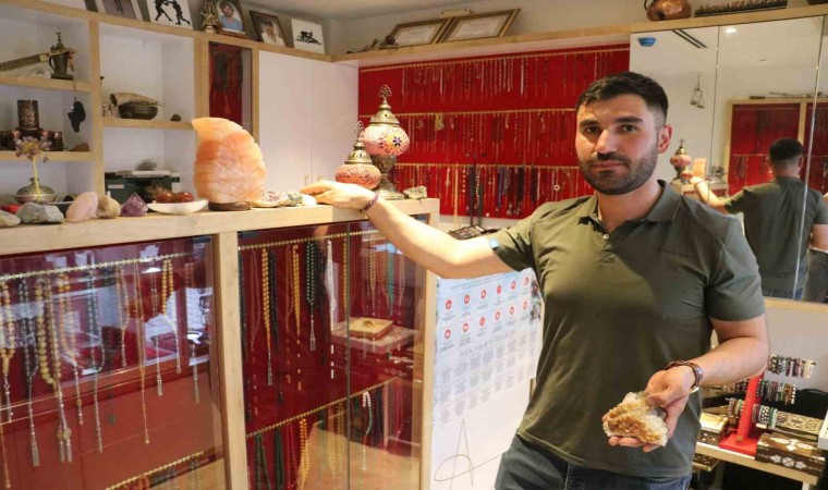 Karakaya, her taşın kendine has özelliği olduğunu belirterek, “Doğal taşlar ülkemizde de bulunuyor. Birçok yerde bulup çıkartıp getiren arkadaşlarımız var. Yozgat tarafından ametist taşı çıkıyor. Aslında gezerken her yerde denk gelebileceğimiz bir taş. İşleme ve makine maliyetleri yüksek olduğu için bu taşlar yurtdışında işlenip geliyor. Bazı taşları burada biz kendimiz de işliyoruz, şekiller veriyoruz. Her taşın kendine has ayrı özelliği var. Örneğin akik taşı nazara karşı çok etkili ve ayrıca sünnet olan bir taştır. Çocuklar için kehribarlarımız var. Kehribar çocukta diş çıkartırken ağrılarına, salyalarına, kemik ağrılarına ve cilt rahatsızlıklarına çok faydalı. Bunlar yıllarca denenmiş ve deneyimlenmiştir” dedi.