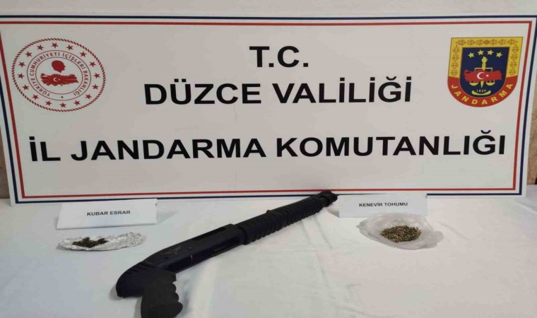 Düzce İl Jandarma Komutanlığınca 30 Kasım - 06 Ekim 2023 tarihleri arasında icra edilen önleyici faaliyetlerde 250 gram kubar esrar, 4 gram metamfetamin, 7 gram sentetik kannabinoid (Bonzai), 8 gram kenevir tohumu, 2 adet uyuşturucu kullanma aparatı, 1 adet pompalı av tüfeği, 5 adet ruhsatsız tabanca ele geçirildi.