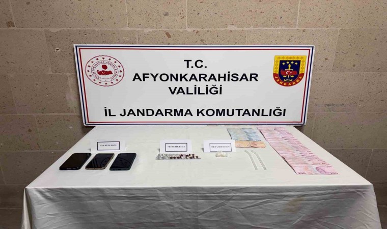 Afyonkarahisar İl Jandarma Komutanlığı ekipler neticesinde, İhsaniye ilçesi Gazlıgöl beldesinde K.Ç., A.Ç. ve İ.G. isimli şahısların uyuşturucu madde ticareti yaptıkları yönünde bilgi aldı. Ardından şahısları takibe alan ekipler şüphelilerin kullandığı aracı durdurarak eğitimli narkotik köpekleri ile arama yaptı. Aramada 10.7 gr metamfetamin, 12 Adet sentetik ecza ve suçtan elde edildiği değerlendirilen 6 bin 600 TL ele geçirdi. Olay sonrası gözaltına alınan şahısların jandarmadaki işlemlerinin devam ettiği bildirildi.