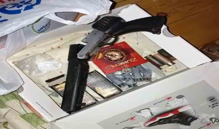Yapılan aramada; 5 kilogram Skunk uyuşturucu madde, 2 kilogram kokain uyuşturucu madde, 95 adet sentetik hap, 2 gram Extasia hap, 3 gram taş kokain, 5 gram macun esrar, hassas terazi, 5 gram kenevir tohumu, 2 adet esrar öğütme aparatı, 150 adet uyuşturucu satmak için kullanılan kilitli poşet, 6 litre esrar yetiştirmek için kullanılan gübre, 3 adet iklimlendirme için kullanılan mekanik zaman saati, 2 adet ruhsatsız tabanca, 2 adet tabanca şarjörü, 58 adet tabanca fişeği, kısa namlulu ruhsatsız pompalı tve ruhsatsız av tüfeği, 135 adet tabanca fişeği, 25 adet av tüfeği fişeği ve 18 bin 400 TL suçtan elde edildiği değerlendirilen nakit para ele geçirildi.
