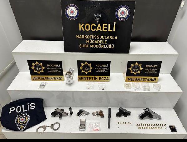 Kocaeli Emniyet Müdürlüğü Narkotik Suçlarla Mücadele Şube Müdürlüğü ekipleri Başiskele ilçesinde uyuşturucu madde sattığı tespit edilen A.K.'yi takibe aldı. Takip sonucu A.K., 4 kişiye uyuşturucu madde satarken suç üstü yakalandı. A.K. ile birlikte uyuşturucu madde sattığı tespit edilen 4 şüpheli de gözaltına alındı. Şüphelilerin üst aramalarında 1 gr metamfetamin, 1 adet tabanca, 6 adet tabanca fişeği ele geçirildi. A.K.nin evinde yapılan aramalarda ise 1 adet polis yeleği, 1 adet kelepçe, 4 adet tabanca, 31 adet fişek, 3 adet sentetik ecza, 2 gr metamfetamin, 1 gr sentetik kannabinoid, 1 adet hassas terazi ele geçirildi. 5 şüpheli gözaltına alındı.
