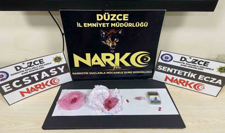 Düzce Cumhuriyet Başsavcılığının koordinesinde İl Emniyet Müdürlüğü Narkotik Suçlarla Mücadele Şube Müdürlüğü ekiplerince yapılan sokak çalışmalarında; şüpheliler İ.A., E.E. ve Ç.U.D. yakalandı. Yakalanan 3 kişi uyuşturucu madde ticaretinden tutuklanırken şüphelilerden uyuşturucu madde aldığı tespit edilen 3 kişi hakkında uyuşturucu madde kullanma suçundan adli işlem yapıldı. Şüphelilerin üzerinde ve iş yerinde yapılan aramalarda 140 adet extacy hap ve 2 adet sentetik ecza ele geçirildi.